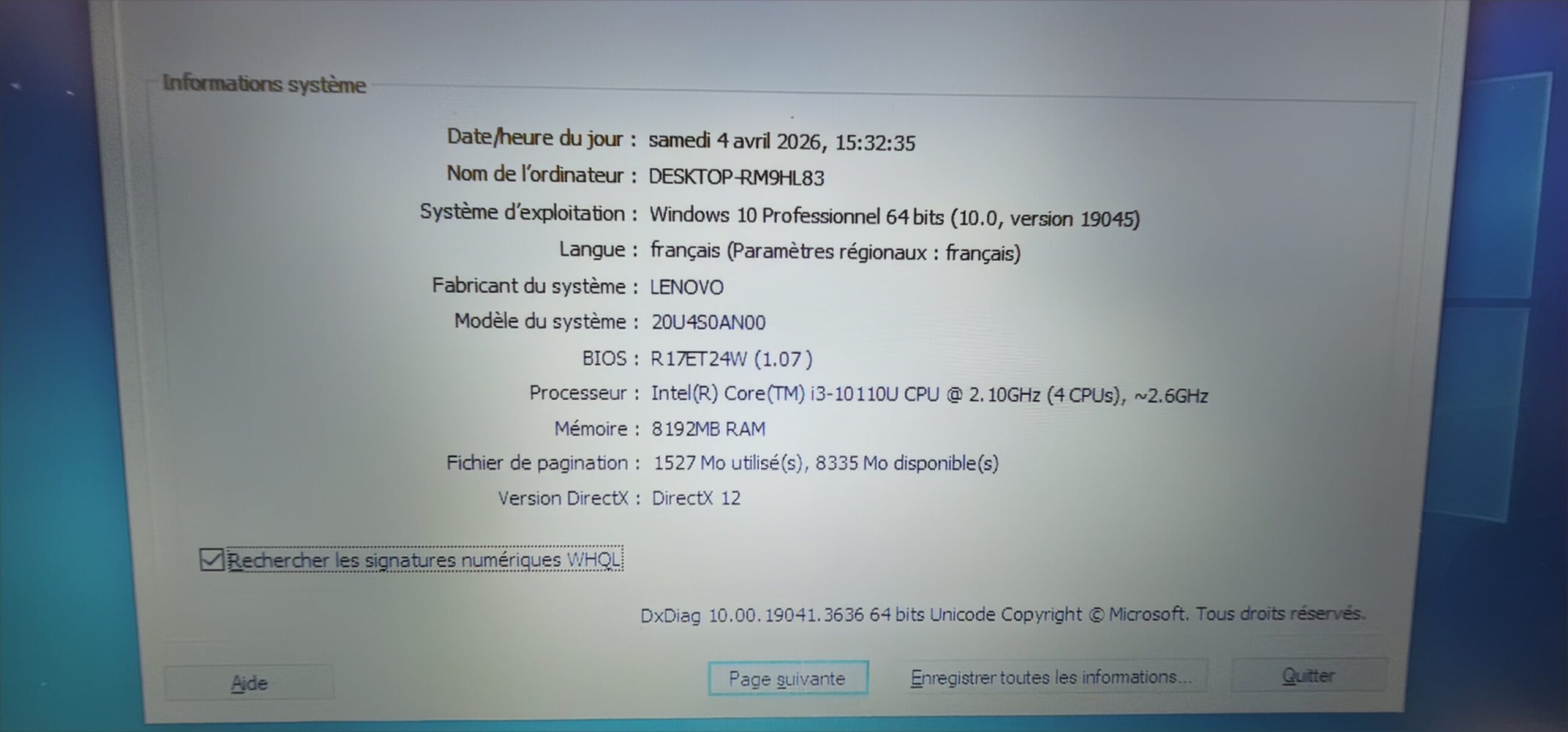 CPU: Intel(R) Core (TM) 13-10110U SSD: 256 GB RAM: 8 GB